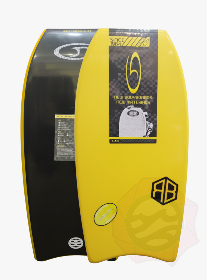 Bodyboard SRT Roberto Bruno | Amarelo-Preto + Pé de Pato + Leash